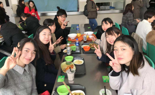 正午时分,各位同学和老师们在中山北路校区“秋林阁”餐厅二楼共进午餐,在异乡见到熟悉的日式料理,茨城的同学们倍感亲切。饭桌上,大家更是无话不谈从人生理想到文化差异,从学习经验到娱乐活动,大家对彼此有了更深刻的了解。