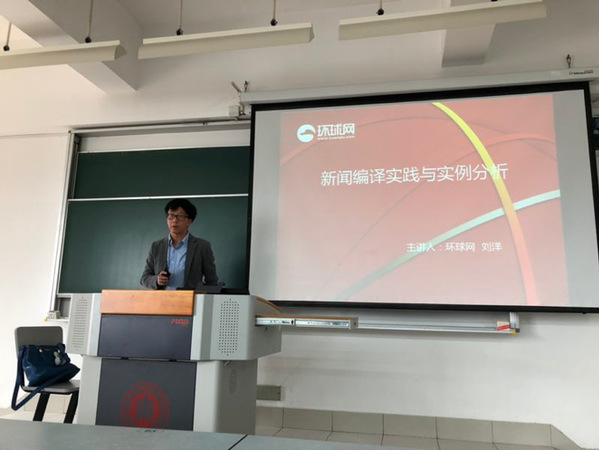 本次讲座由“华东师范大学-环球网翻译实习基地”举办,邀请到环球网资深编辑刘洋老师,讲授财经新闻编译实践以及实例分析。