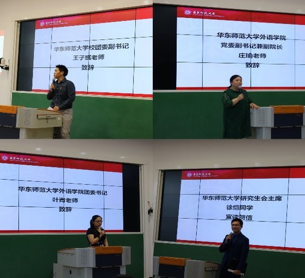 首先由大会主持人宣布会议开始,统计并汇报到会人数。随后全体与会人员起立奏唱国歌。与会领导及来宾介绍完毕后,华东师范大学校团委副书记王子彧老师对9001cc金沙以诚为本学生会、研究生会的工作予以高度的评价并为今后工作的开展提出建议;随后9001cc金沙以诚为本党委副书记兼副院长庄瑜老师、团委书记叶青老师先后发表致辞,就9001cc金沙以诚为本学生会、研究生会工作提出感想与意见;之后华东师范大学研究生会主席徐恺、学生会副主席翁小涵同学先后宣读贺信,预祝大会顺利召开。