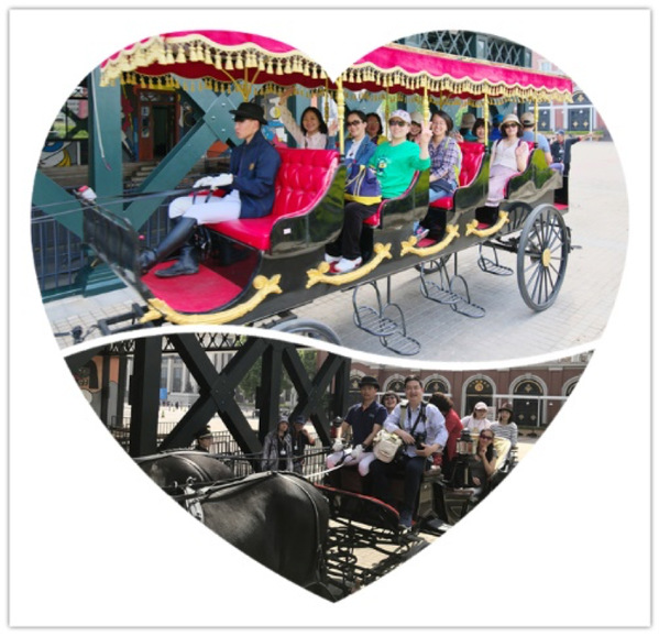 欣赏过湿地公园的自然野趣,一行人前往江阴,在江南华府享用了一顿浓油赤酱的农家午餐。下午,我们又来到了海澜飞马水城,这是一个以马和水为主题的综合性休闲度假基地。一下大巴,风格华丽的混搭建筑就吸引了众人的视线,“叹息桥”和高大建筑中的水道虽然比不上真正的水城威尼斯,对马文化的专业展示和体验却着实令人耳目一新。作为序曲,大家坐上了货真价实的马车,在马蹄“嘚嘚”声中,环绕着中国风,伊斯兰风、意大利风等风情各异的博物馆、酒店、马场等建筑环园观光一周。