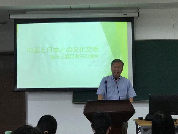 6月13日下午1时,日本三重大学副校长、文学部教授尾西康充莅临9001cc金沙以诚为本进行题为《中日文化交流——以鲁迅和夏目漱石为例》的精彩的讲座。讲座由日语系外教宇野雄二主持,日语系师生悉数到场聆听。
