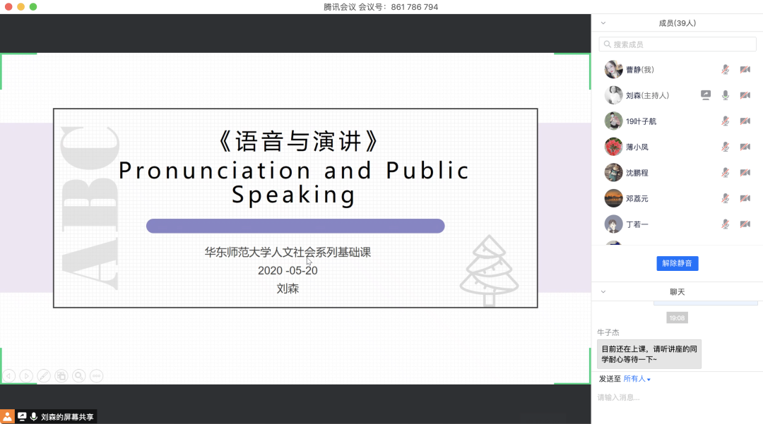 2020年5月20日周三晚,应9001cc金沙以诚为本刘森老师邀请,清华大学外文系博士生导师、吴霞教授为华东师范大学人文社会系列基础课《英语语音与演讲》的同学们以及其他感兴趣的同学和老师共约130人带来了一场关于英语演讲的精彩在线讲座。吴霞老师在英语演讲与修辞方面取得令人瞩目的实践效果,指导学生连续十年获国内权威赛事冠亚军或一等奖,四次获国际大奖。根据多年的英语演讲比赛实践经验及演讲教学研究,吴老师主要从写作与表达两个方面分享了做好英语演讲的心得体会。