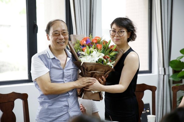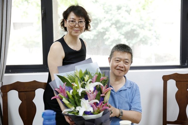 学院工会副主席王玮代表学院工会向两位老师赠送了鲜花,表达了美好的祝愿,祝愿两位老师荣退后能开始精彩的第二人生。