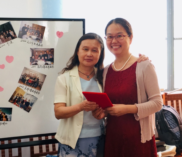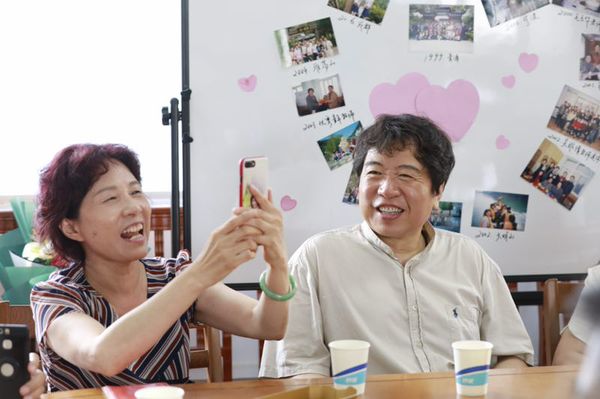 仪式开始之前,大英部老师特意选出了一些老照片贴在会议室的白板上,这些老照片引发了两位老师很多美好回忆。之后,苏俊玲老师分享了二十年前刚来到大学英语教学部时和两位老师的相识过程,以及之后工作和生活中得到两位老师的诸多帮助。闫露书记回忆起她在大学时与英语老师孙虹副教授的点点滴滴。孙老师不仅上课认真,课后还经常鼓励同学努力学习英语,提高专业能力。同时,闫老师还讲述了魏葆霖老师多年来在教学岗位上无私奉献的先进事迹,尽管满载荣誉,但魏老师始终谦虚低调,值得青年教师学习。严文庆主任讲述了他从进校开始就感受到两位老师的关怀,表示自己始终把两位老师作为人生榜样,在工作中力求勤奋踏实。参加仪式的其他老师也都争相发言,魏老师和孙老师多年来不仅对教学精益求精,甘于奉献,在为人处事方面也乐观豁达,为大家树立了楷模。