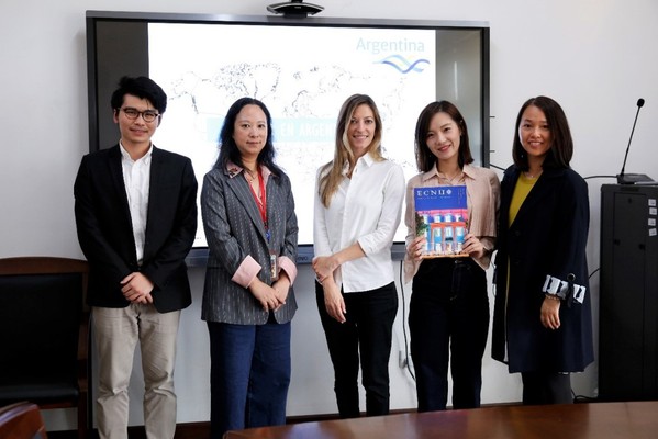 袁筱一首先向Victoria的造访表示感谢,随后详细介绍了我院西班牙语专业的发展历史、现有的拉美合作项目及新成立的拉丁美洲研究中心,并表达了与阿根廷知名高校积极展开合作的期待。