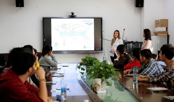 随后,Victoria Armayor作为阿根廷文化的推广大使,为到场的西班牙语专业的师生带来了一场内容丰富、形式多样的讲座。首先,她对西班牙语在世界范围内的重要性做了全面性的概述,并突出西班牙语的世界性和多样性。随后,通过多个短视频形象而生动地介绍了阿根廷的风土人情、流行文化以及丰富多彩的留学生活。最后,详细介绍了留学阿根廷的具体注意事项,其中包括阿根廷驻华领事馆签证中心的专项服务、阿根廷国际知名高校(布宜诺斯艾利斯大学、国立科尔瓦多大学、国立拉普拉塔大学等)专门针对中国学生的留学项目和特色课程,以及官方认可的语言考试体系,并鼓励学生前往阿根廷留学。西班牙语专业的学生也展现出极大的兴趣,现场气氛十分热烈。