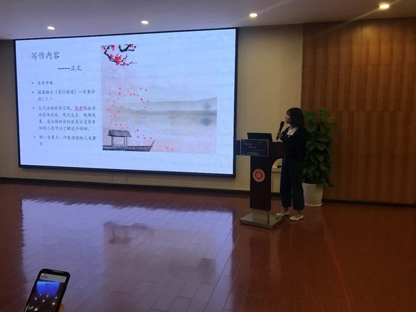 文体部的梁韶文学姐通过实例形象地向同学们介绍了通讯稿的写作,并在形式、内容以及提交格式上作出了具体的要求。