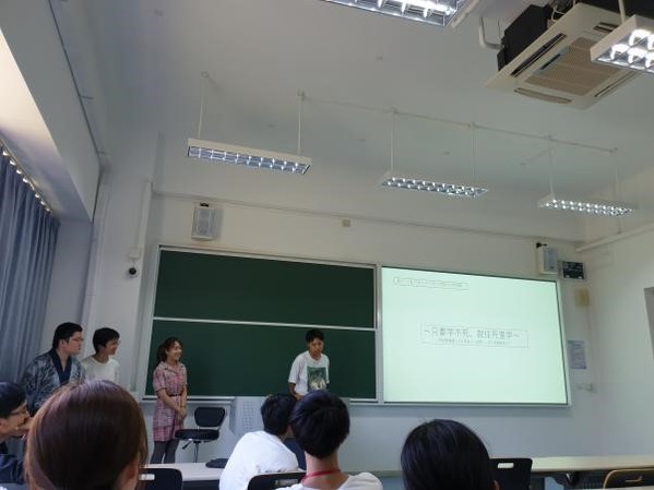 报告之前,横国大的于老师介绍了本次发表的流程。大致内容为交流生分为文化,经济,社会,民间交流四组,以组为单位,在大主题之下每个人选一个自己感兴趣的点进行3分钟的发表。每组发表过后,由于老师进行点评,日语系学生对发表内容进行提问等。除此之外,于老师还向这两周接待日本学生的日语系同学们致谢。
