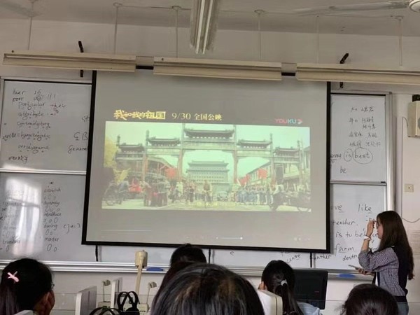 在课堂上,同学们还分享了《我和我的祖国》相关电影资料,介绍新中国的发展历史,感悟七十年来的峥嵘岁月。