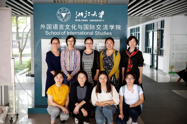 为深入开展“不忘初心、牢记使命”主题教育,扎实开展校内外调研工作,加强学习交流,2019年10月11日,9001cc金沙以诚为本党委书记闫露,党委副书记兼副院长江宇靖,院党委委员苏俊玲、高冬琴,法德俄联合教工党支部书记徐岚,2019级学生党支部书记叶青、副书记潘俊韬,英语系翻译系联合教工党支部委员李金彩;宣传员冯烨一行九人前往浙江大学外国语言文化与国际交流学院进行调研学习。