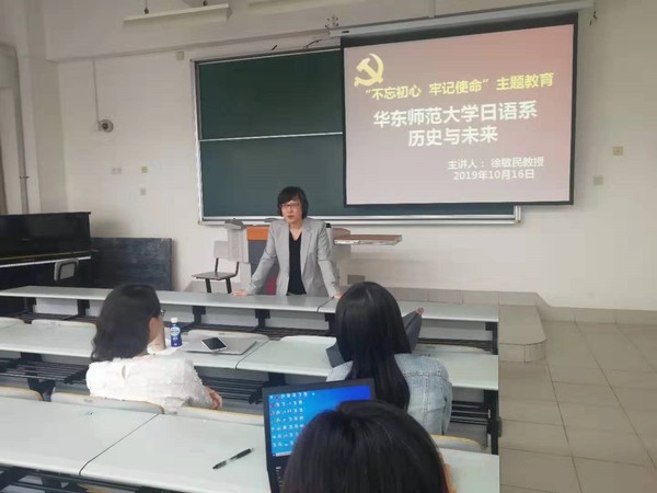 10月16日,为进一步深入开展“不忘初心,牢记使命”的主题教育活动,日语西班牙语教工联合党支部邀请日语系退休教师徐敏民教授带领大家一起回顾了日语系近50年的学科发展历程以及老一辈名师的奋斗往事,讲座由金晶老师主持。